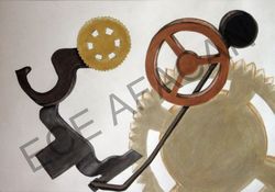 Composition, Detail of old alarm clock. 35x50cm. Color paint, gouache paint.